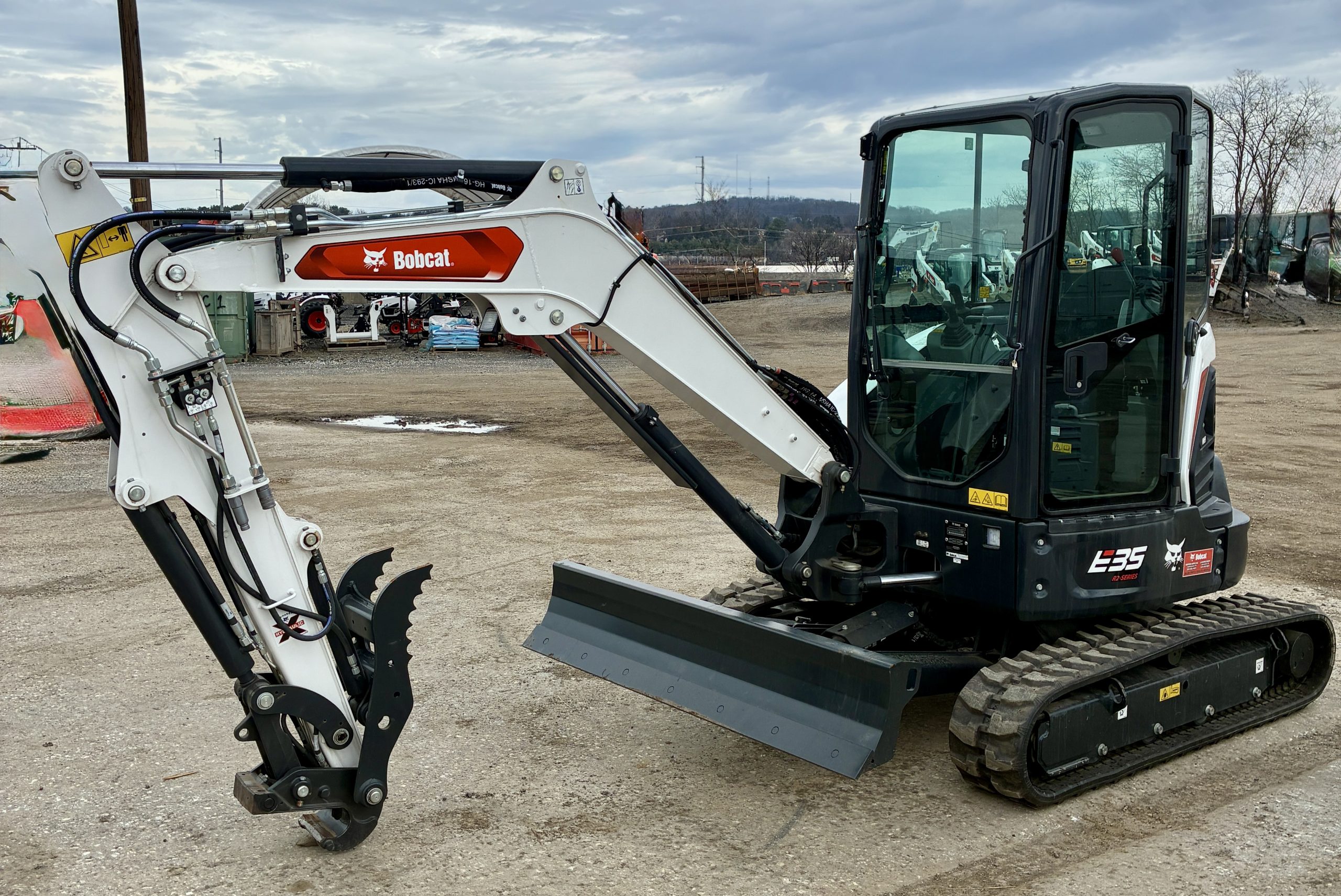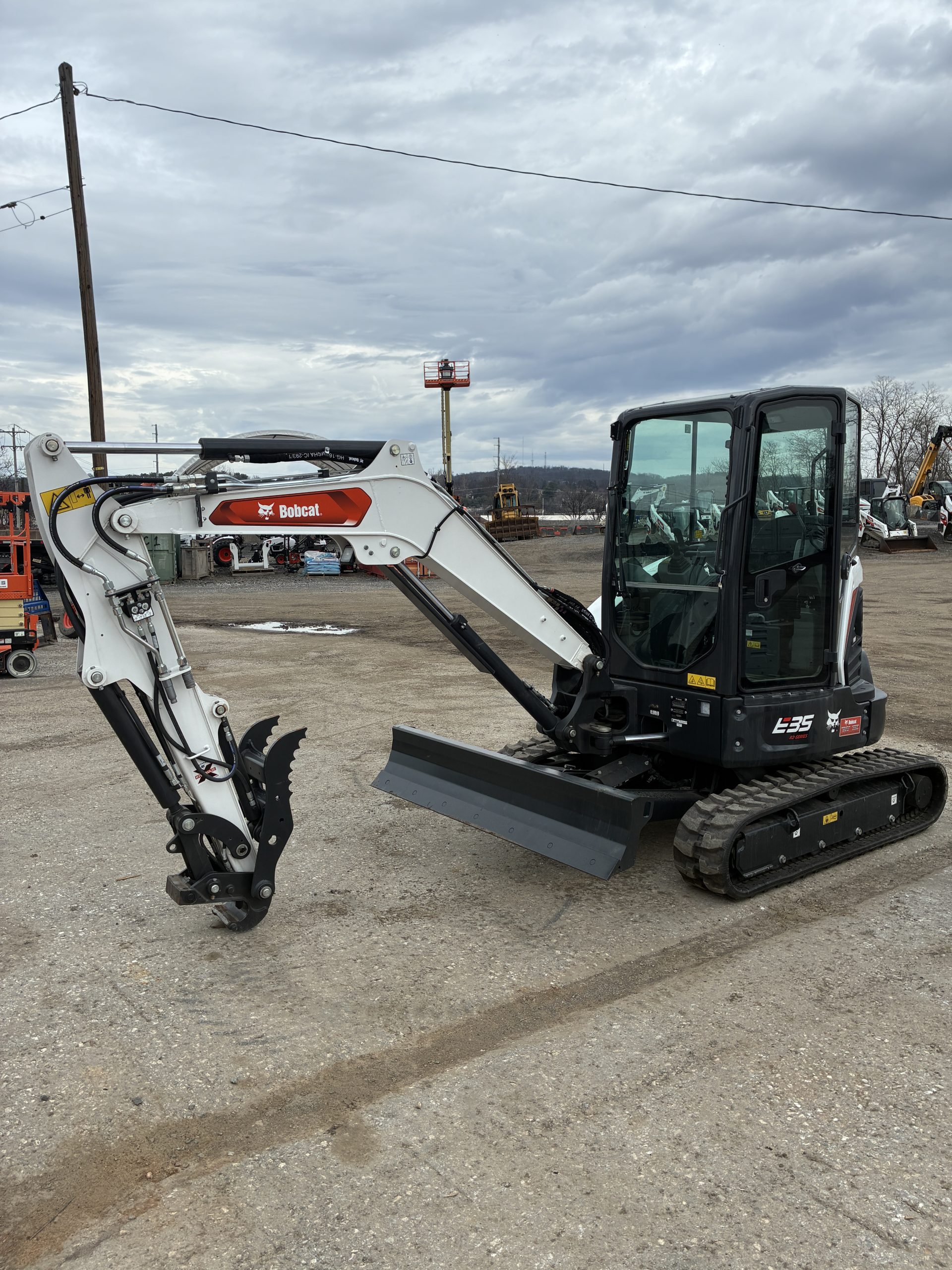 The Bobcat Compact Excavator is a powerful and versatile machine designed for digging, trenching, and site preparation in tight and demanding job sites. Its compact size allows for easy maneuverability while still delivering strong digging performance.